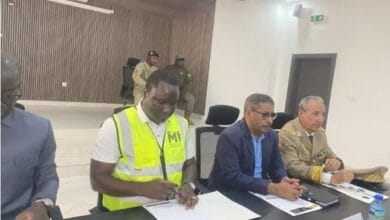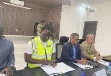 طالب وزير التجهيز والنقل الموريتاني، أعل ولد الفيرك، ونظيره السنغالي وزير البنية التحتية، ديلهي فال،…