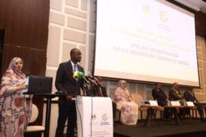 أما المدير العام للوكالة، السيد با عثمان، فقد عبّر عن تقديره لحضور أعضاء الحكومة، معتبرًا أن ذلك يعكس إرادة رسمية لتعزيز حوكمة قطاع التعدين الأهلي وشبه الصناعي. واستعرض جهود الوكالة خلال السنوات الأخيرة في إعداد استراتيجية للتنظيم والتصنيف، وتعزيز الرقابة، وتحسين البنى التحتية، وتنظيم الأروقة المعدنية، مؤكدًا أن تطوير القطاع يتطلب التوفيق بين الجدوى الاقتصادية والعدالة الاجتماعية وحماية البيئة. كما خصّ بالتحية السيد إبراهيم تياو، ممثل اتفاقية مكافحة التصحر، تقديرًا لدعمه المبكر لمبادرة إعداد التقرير.